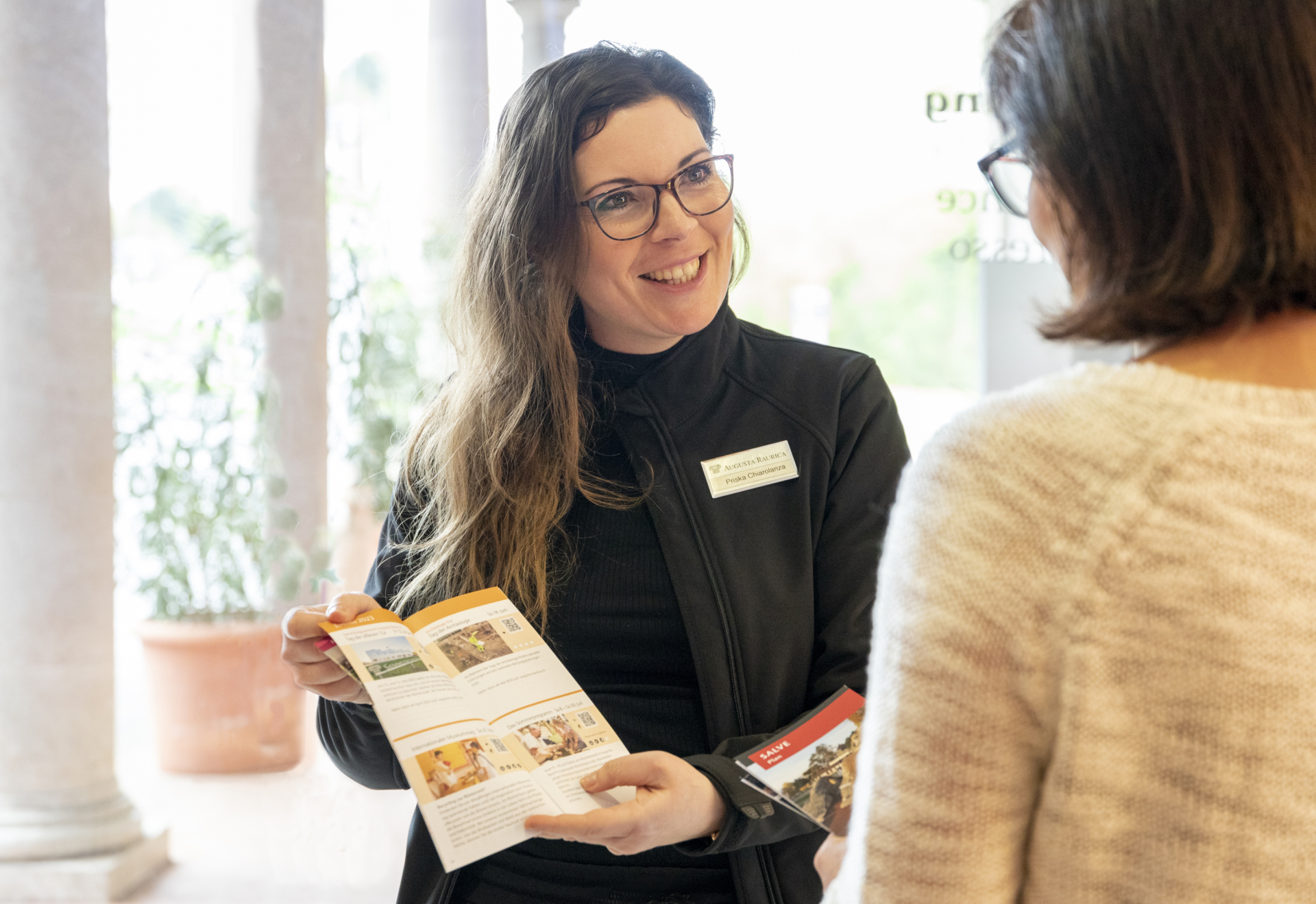 Nous nous occupons des différentes visites à Augusta Raurica, des classes d’école aux visiteurs et visiteuses individuels, en passant par les groupes. Nous réservons et gérons pour notre clientèle les ateliers, les visites guidées et les entrées pour les expositions, nous accueillons nos visiteurs et visiteuses au musée et prenons en charge les événements de l’administration cantonale ainsi que de l’Université de Bâle au domaine de Castelen. Nous formons également des commerciales et commerciaux de l’administration cantonale. En résumé, nous sommes le visage ou la carte de visite d’Augusta Raurica pour les clients. Notre équipe se compose de commerciales et commerciaux, d’hôtes et hôtesses ainsi que de spécialistes du tourisme, des voyages et de l’hôtellerie.