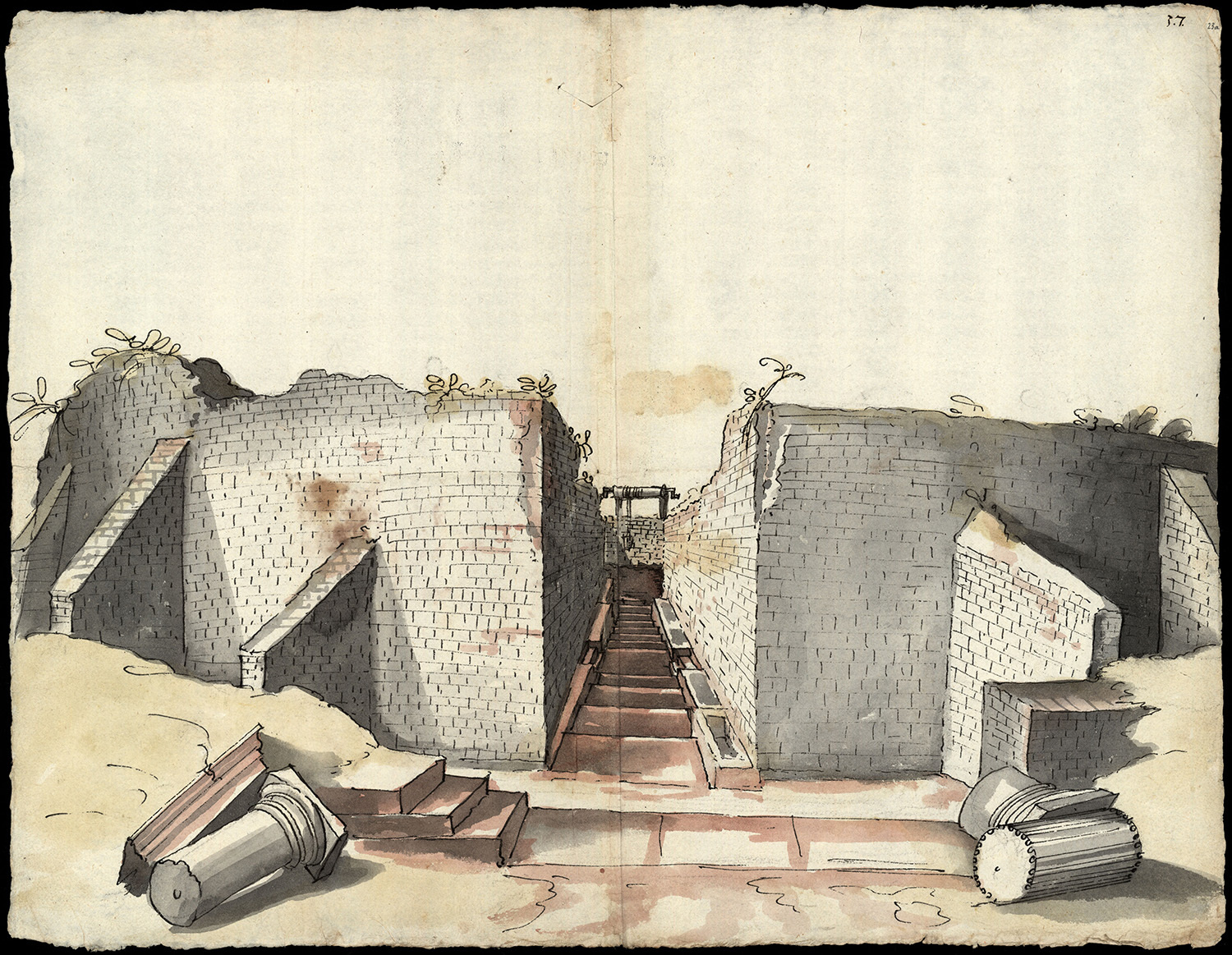 Pour une meilleure compréhension, la vue doit remonter à plusieurs siècles. Après le déclin de l'ancienne ville, les connaissances sur celle-ci ont été largement perdues. Seuls quelques témoignages sont encore visibles au Moyen-Âge, mais ne sont pas reconnus comme tels. Cela n'a commencé à changer qu'à la Renaissance et dans l'Humanisme. Avec le regain d'intérêt pour l'antiquité gréco-romaine, le besoin de retrouver des preuves possibles de l'implantation romaine s'est également accru dans notre région. De 1588 à 1990, des fouilles archéologiques ont été menées pour la première fois sur le territoire de la vieille ville romaine sous la direction du conseiller et marchand bâlois Andreas Ryff. Ils ont eu pour effet que les vestiges les plus frappants et les plus visibles, que les habitants du coin appelaient les "Neuf Tours" depuis des générations et que l'on a longtemps cru être les restes d'un château, ont été identifiés par le célèbre savant Basilius Amerbach comme ce qu'ils étaient réellement : les vestiges d'un théâtre romain.