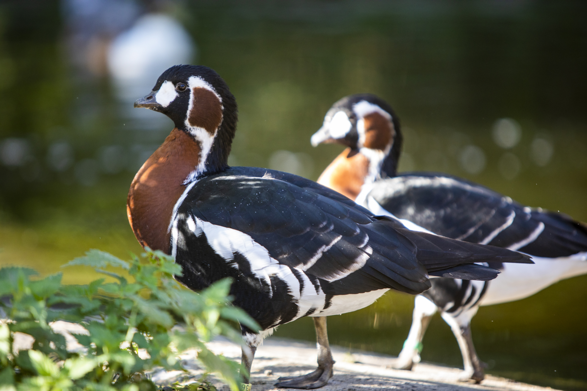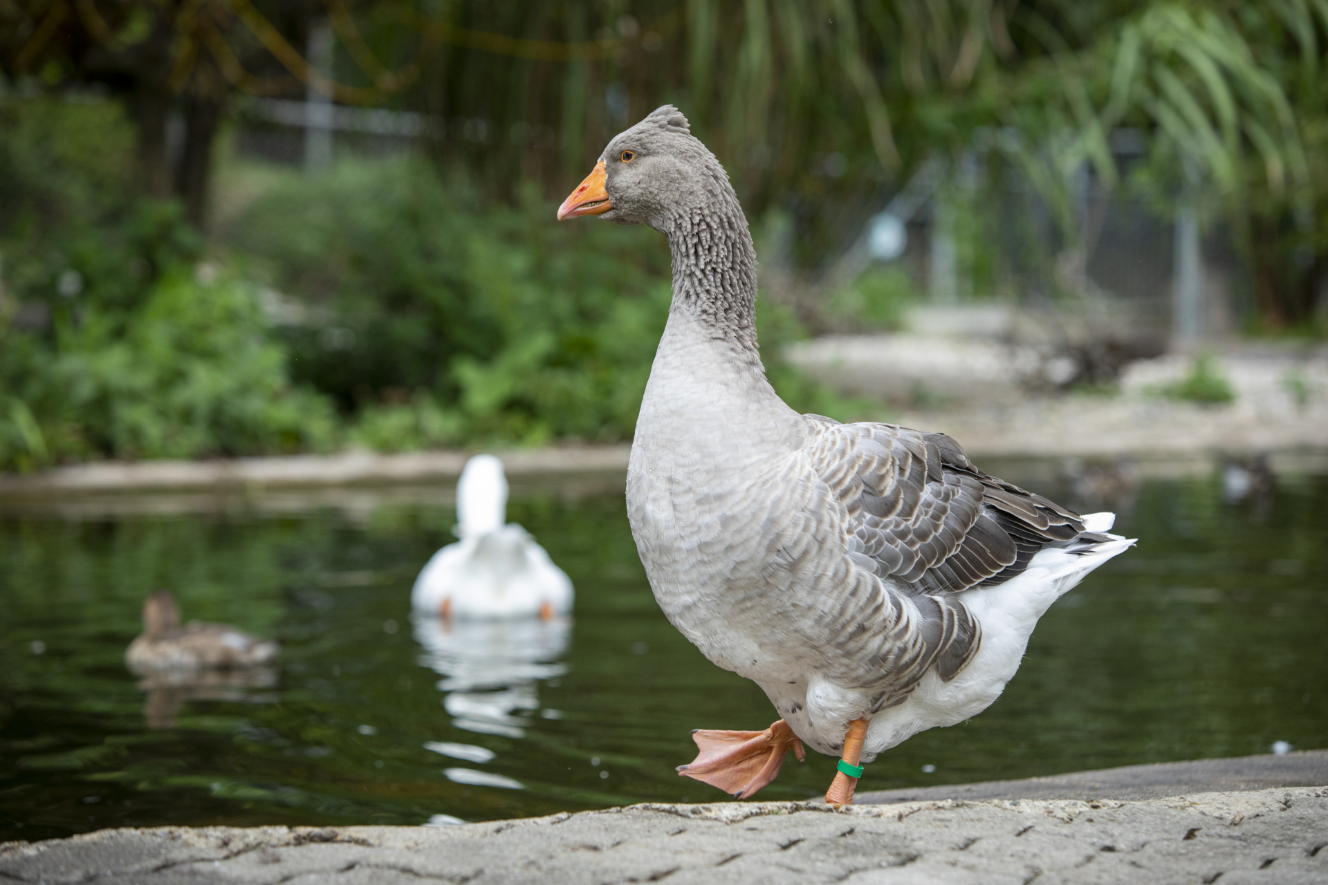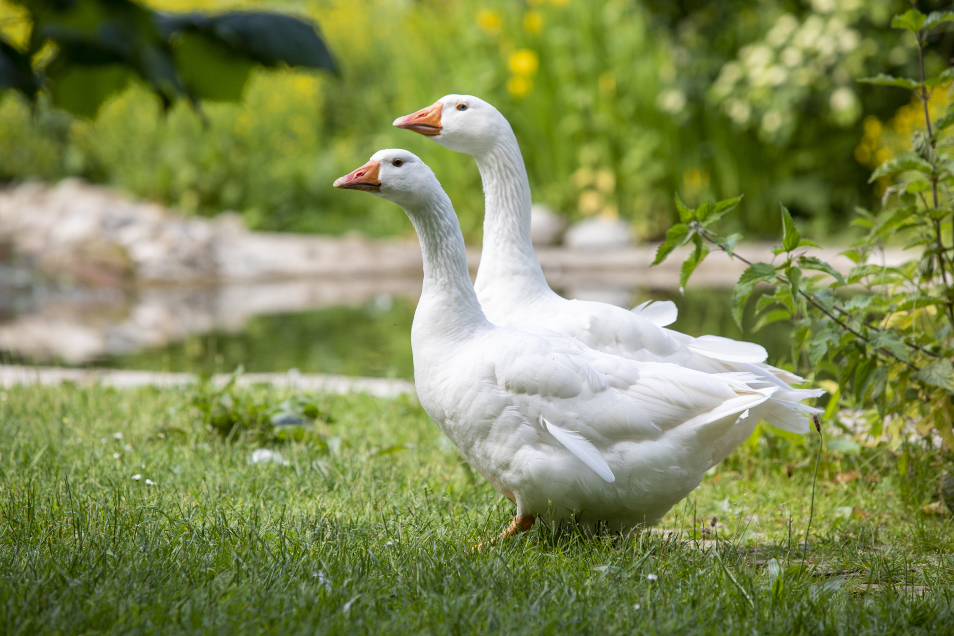 Dans le parc animalier, les oies de Diepholz, les oies de Poméranie, les oies de Chine et les bernache à cou roux sont élevées ensemble.