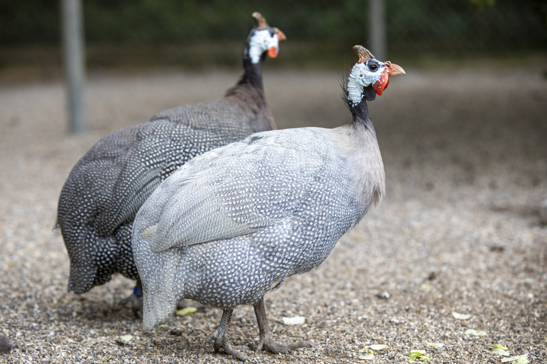 Les pintades appartiennent à la famille des gallinacés et nous viennent des savanes et forêts d’Afrique. Elles doivent leur nom aux minuscules points ornant leur plumage : selon la légende de la Grèce antique, ces points ont été formés par les larmes versées par les sœurs du héros Méléagre après sa mort.