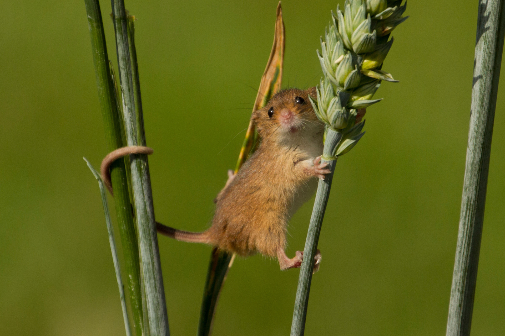 Le rat des moissons et le plus petit rongeur d’Europe. Celui-ci construit son nid en hauteur, dans les tiges des roseaux et les brins de carex et donc, le plus souvent, le long des lacs et rivières s’écoulant lentement. Lorsqu’ils escaladent, leur queue les aide à s’agripper et à grimper.