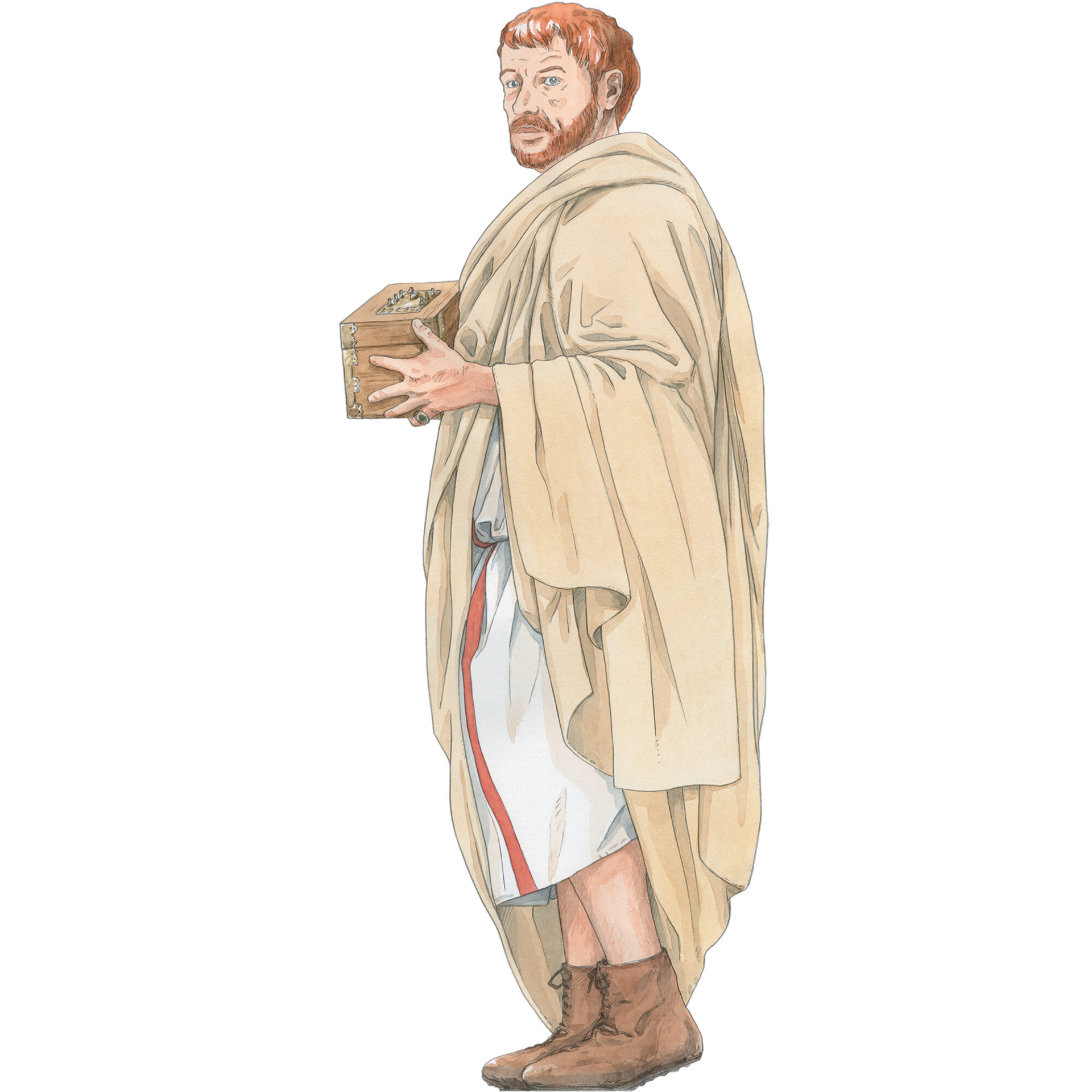 «Mein Name ist Lucius Ciltius Cossus und unsere Familie lebt schon seit «ewigen Zeiten» in diesem Gebiet. Wie die Inschrift zeigt, hiess mein Vater Celtillus: Er war keltischer Herkunft, aber das habt Ihr bestimmt schon selber erraten. Aus meinem dreiteiligen Namen könnt Ihr ersehen, dass ich das römische Bürgerrecht besitze. Ich verrichte das Amt eines Sechserherrn und bin somit Mitglied einer Vereinigung für die zuverlässige und formvollendete Ausübung des Kaiserkultes. Im Gegensatz zu mir sind die meisten meiner Kollegen Freigelassene: Das Amt des Sechserherrn ist nämlich eines der wenigen prestigeträchtigen Ämter, für welches kein römisches Bürgerrecht verlangt wird. Reich muss man allerdings trotzdem sein, um sich dafür zu bewerben!"